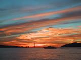 Yesterday morning I woke up at 5:20, misread the clock, and so I ended up with two cups of coffee on the 6:45. Sunrise over the Bay Bridge looked pretty danged cool, so with a cup in my hand I pushed open the door to the open area on the bow, stepped around the corner, and discovered that the venturi effect from 30 mph winds on a coffee cup has to be seen to be believed. And there was a rainbow back over Sausalito