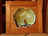 Cherry frame with EL panel backlight, highlighting slice of agate stone.