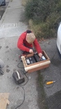 Ethan checking the charge state on our batteries.