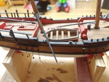 Just made and attached 16 shroud blocks. Apparently on the actual ship they're forged, did the model does them with brass wire. But now it's tie and seize 16 shroud lines, and... I've gotta come up with a better system...