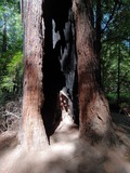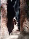 And Charlene peeking through that hole in the burned out redwood, for scale