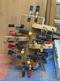 That resaw this morning is for a queue-jumper, and it's gonna need a plaque, so I'm gluing up a veneer lamination on to some 1/4" maple to give me a dark layer to cut through for light lettering. Once again wish I had even more clamps.